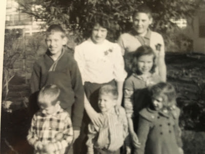 | Ukiah, California ca.1960 Back row: Ross, Susie, Dale front row, David, Donnie, Mariane (Debbie in front of Dale) |